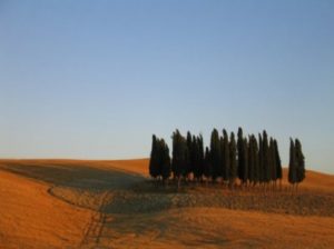 Se relevant d’une nuit de tagadam tantôt trépidant et tantôt en sourdine nos paupières tôt l’aube nous révèlent ce matin ces verts tendres des collines de Toscane aux crêtes à fines flammes de cyprès et de clochers, et le long des voies se voient ces îlots de coquelicots et jusque dans l’entrelacs des voies de Roma Termini, et jusque sur les murs de notre chambre jouxtant le Campo de Fiori en candide aquarelle…